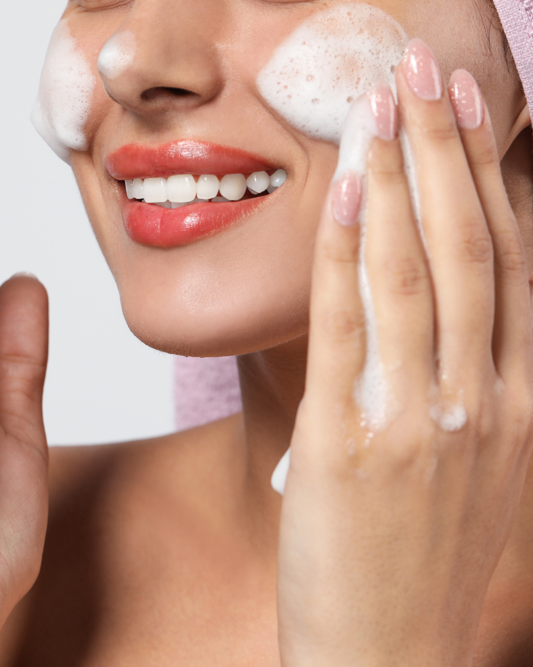 Paso #1 Aplicar masajeando el rostro con abundante agua en la mañana y en la noche previo a los siguientes productos.
